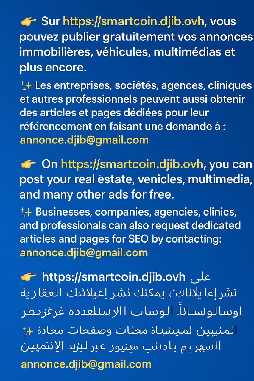 📢 Bienvenue sur SmartCoin – Votre plateforme d’annonces en ligne à Djibouti
